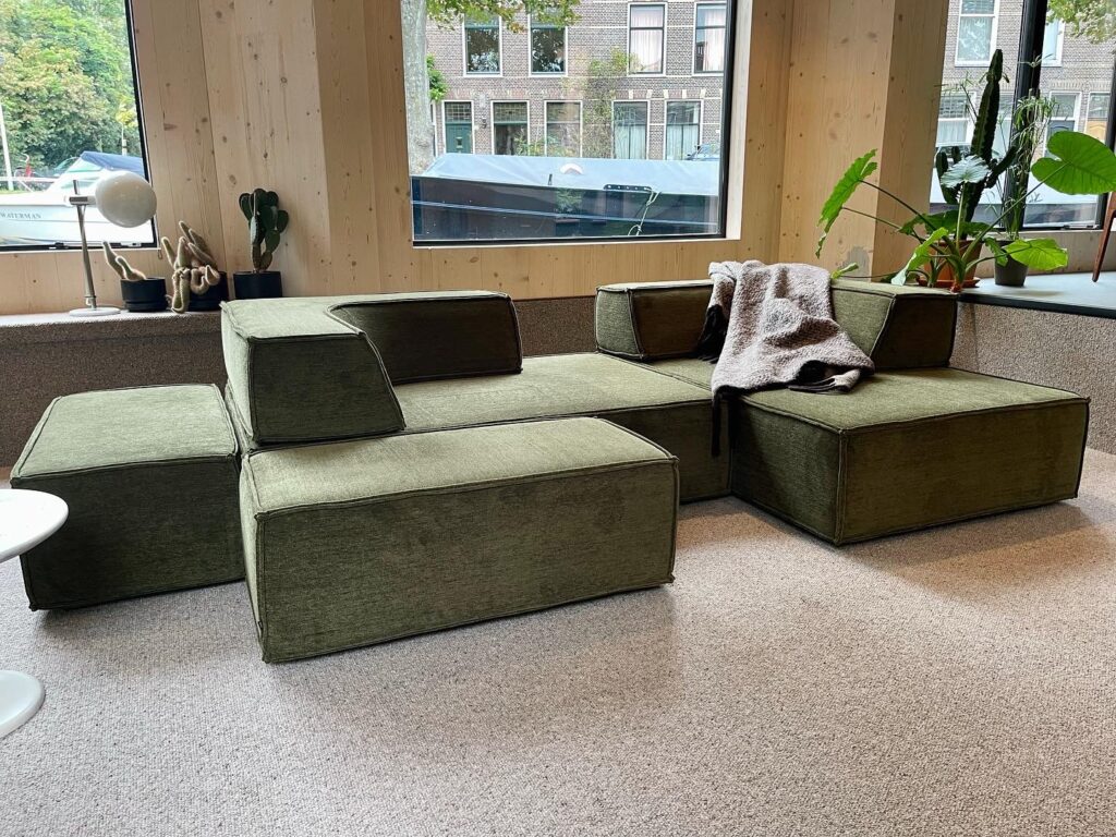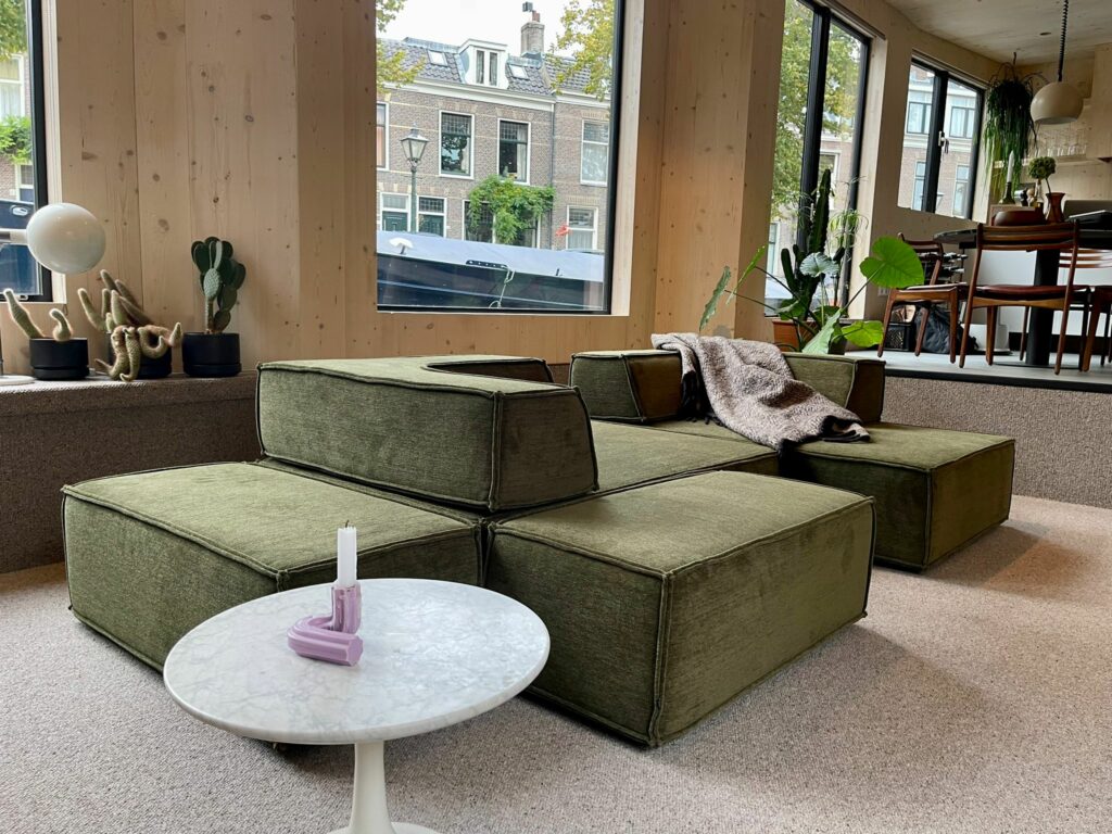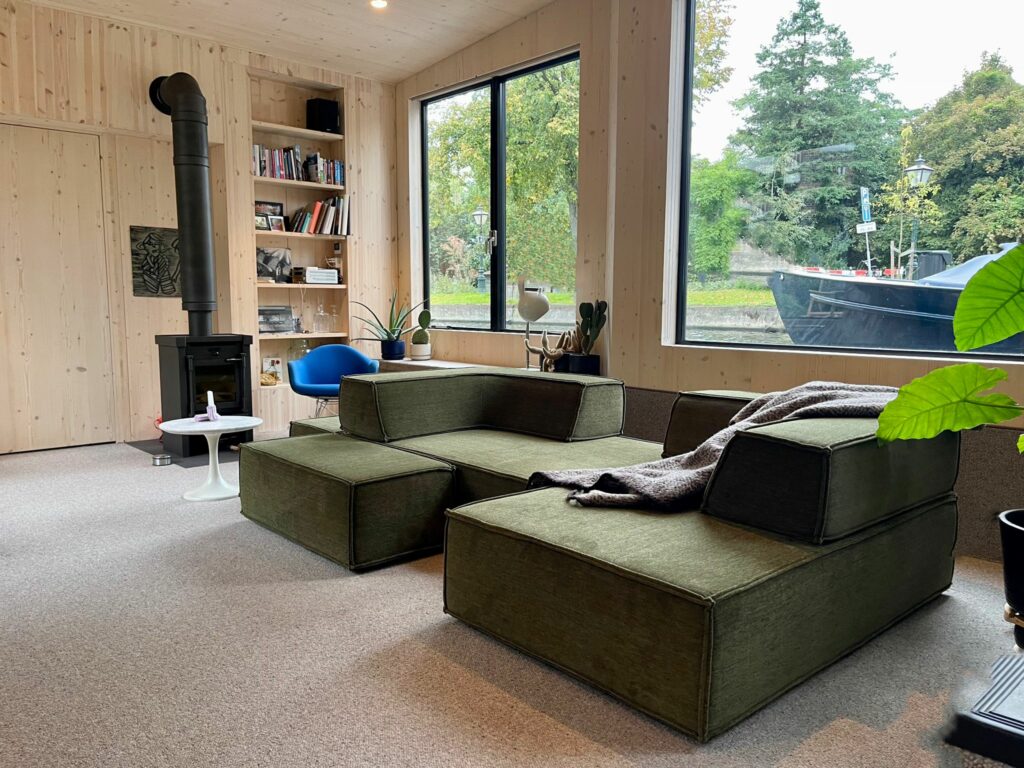 Voor deze gave woonboot hebben we gebruik gemaakt van de ruimte door een modulaire bank neer te zetten, dit geeft de optie om te blijven spelen met opstellingen.