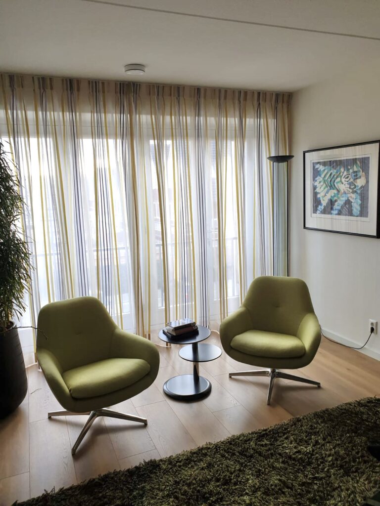 Afstand houdt ons niet tegen! Dit appartement in Lisse is vrij donker, maar door de neutrale tinten komt het interieur tot haar recht.